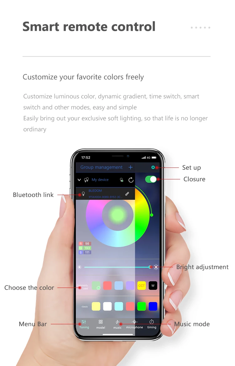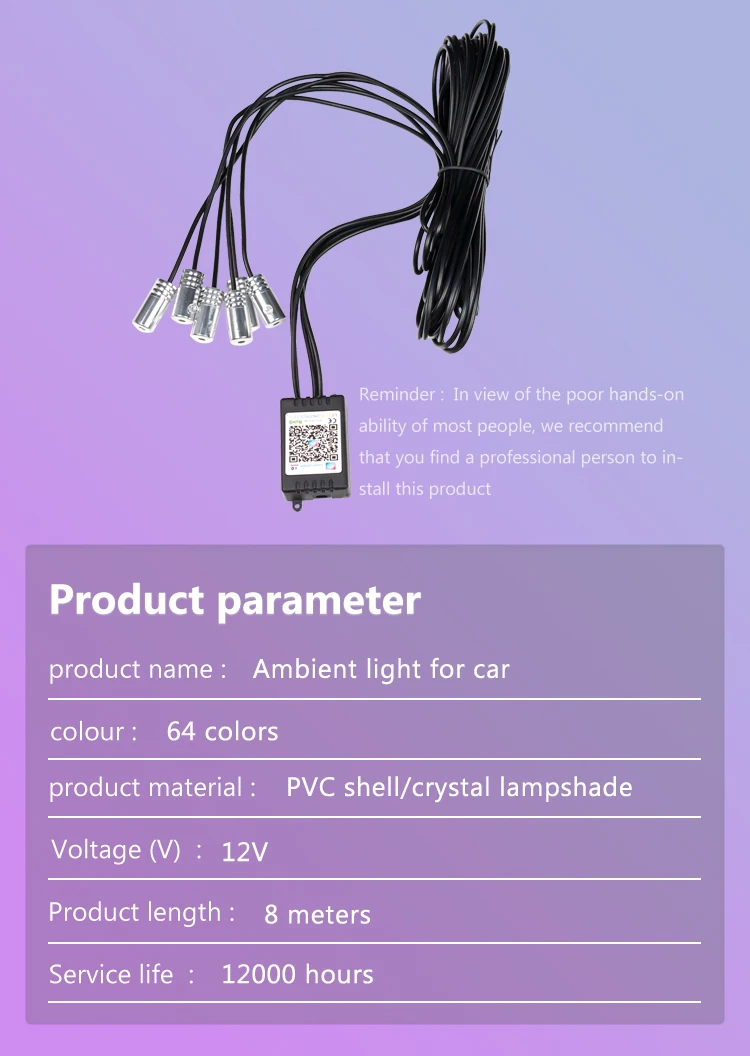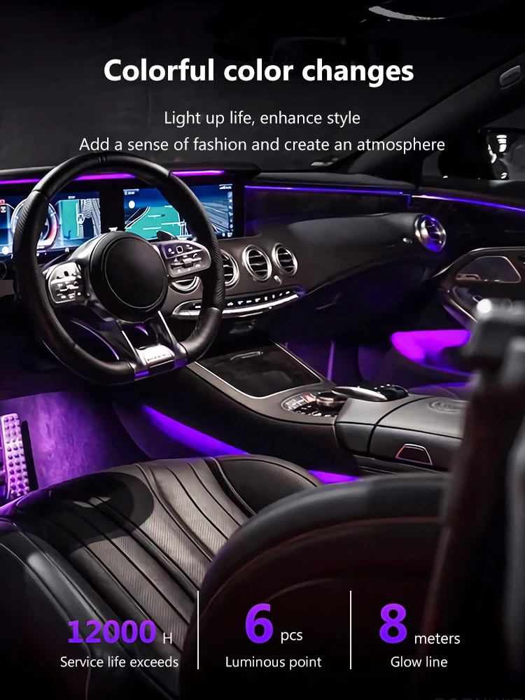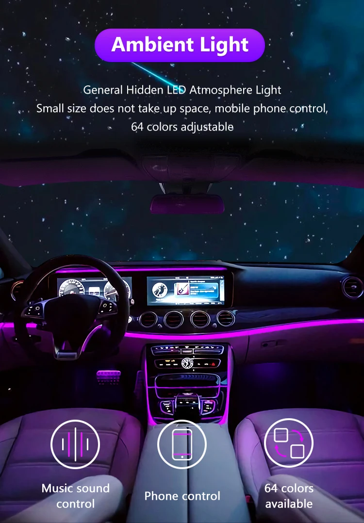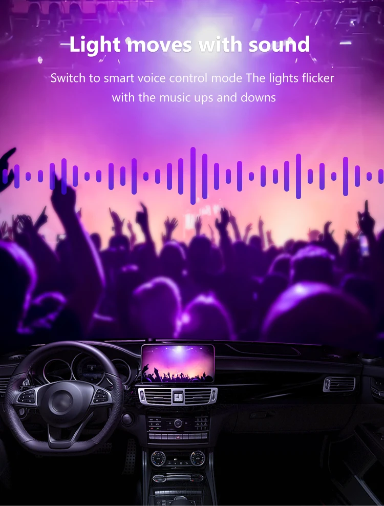 APP Control RGB Car LED Interior Ambient Lights Music Sync Footwell Kit Bluetooth 16 Million Colors
